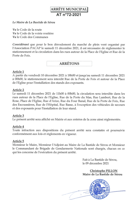 arrêté municipal est une décision prise par le maire, dans le cadre du bon fonctionnement de sa commune Cette décision est formalisée par un arrêté municipal, qui est une catégorie
